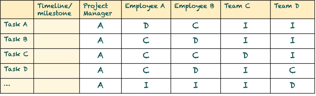 管理這種複雜專案,可以使用專案管理分工矩陣。 常見的矩陣有 RACI 和其進階版 ARCI 和 DACI。