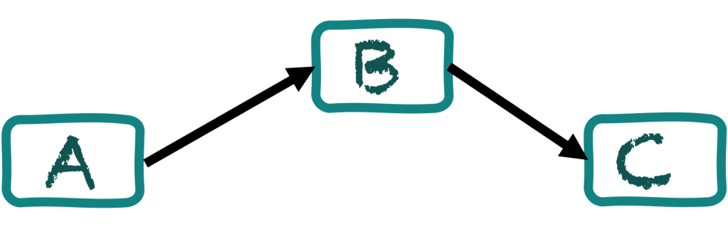 假如變因 A 影響 B,B 又影響 C,那麼 A 和 C 之間即使沒有直接影響,也會有相關性。